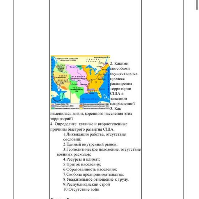 2) США расширяли свою территорию на запад, благодаря строительству железных дорог и заселению этих территорий колонистами.