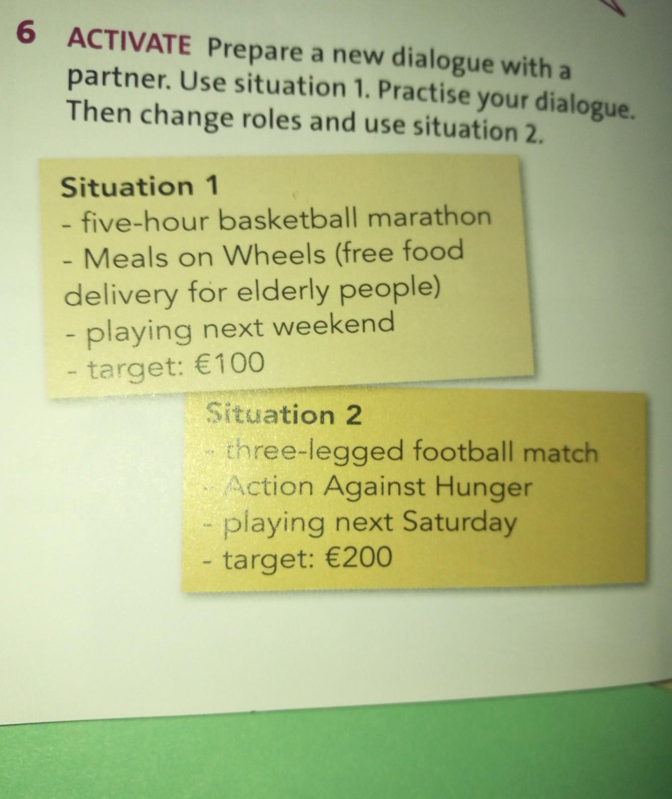 partner. Use situation 1. Practise your dialogue.