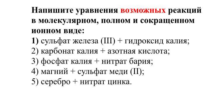 1) Fe2(SO4)3 + 6KOH = 3K2SO4 + 2Fe(OH)3