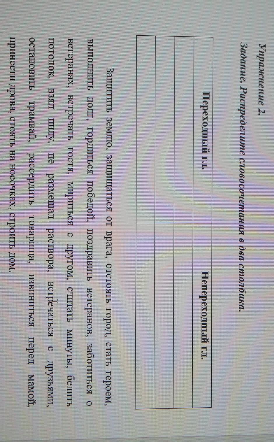 Непереходные: защищаться от врага, стать героем, гордиться победой, заботиться о ветеранах, мириться с другом, не размешал раствора, встречаться с друзьями, извиниться перед мамой, стоять на носочках.