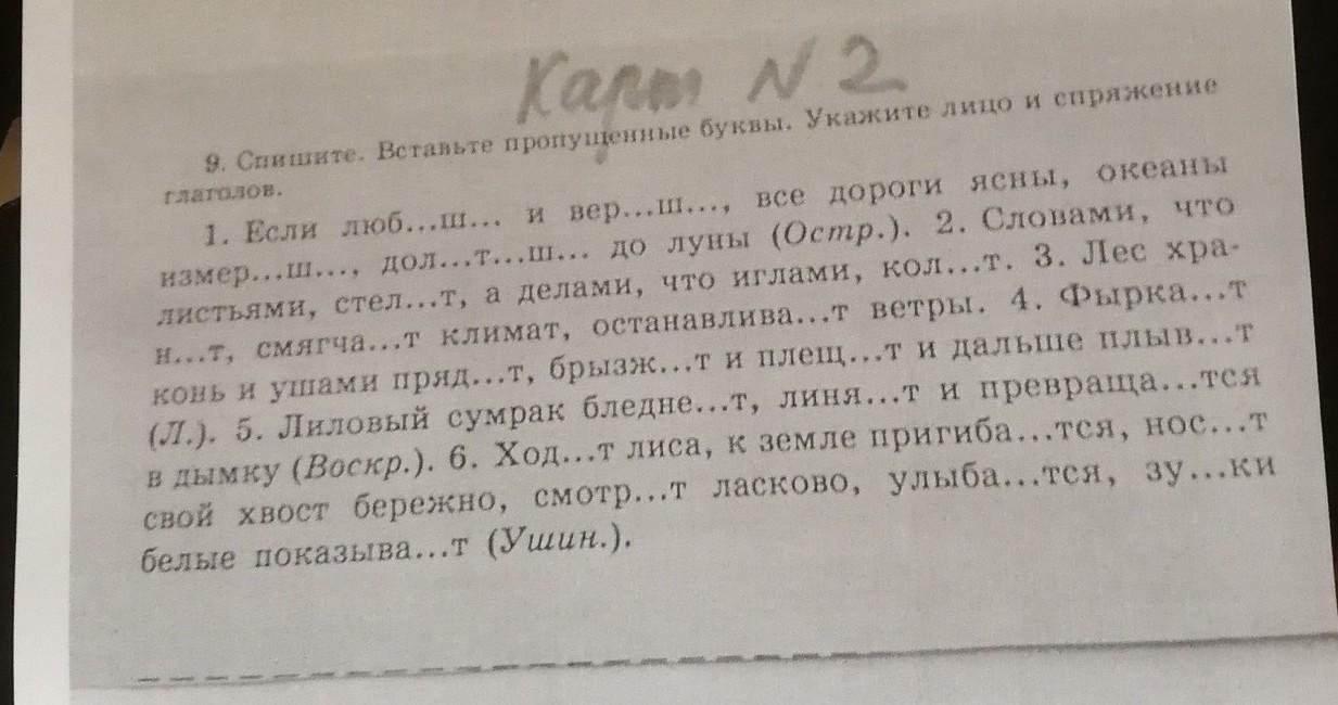 6. Ходит (3 л 2 спр) лиса, к земле пригибается(3 л 1 спр), носит (3 л 2 спр) свой хвост бережно, смотрит (3 л 2 спр) ласково, улыбается (3 л 1 спр), зубки белые показывает (3 л 1 спр).