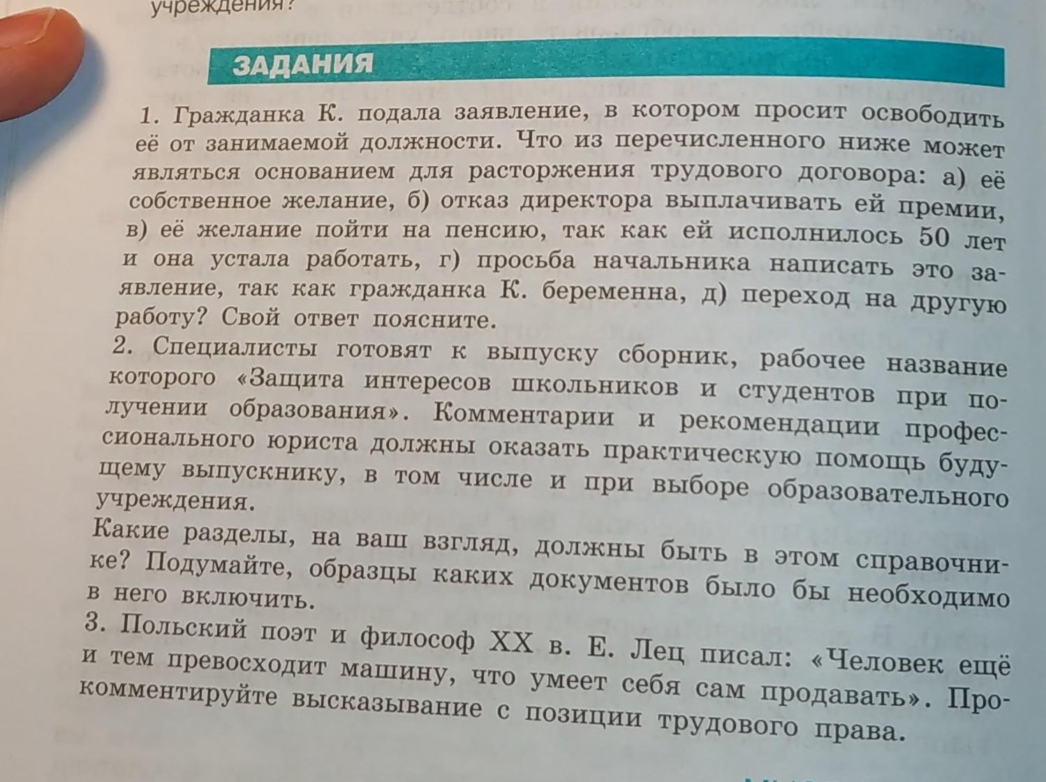 г) просьба начальника написать это заявление, т.к. гражданка К. беременна (т. к. в случае беременности договор может расторгнуть только сама работница).