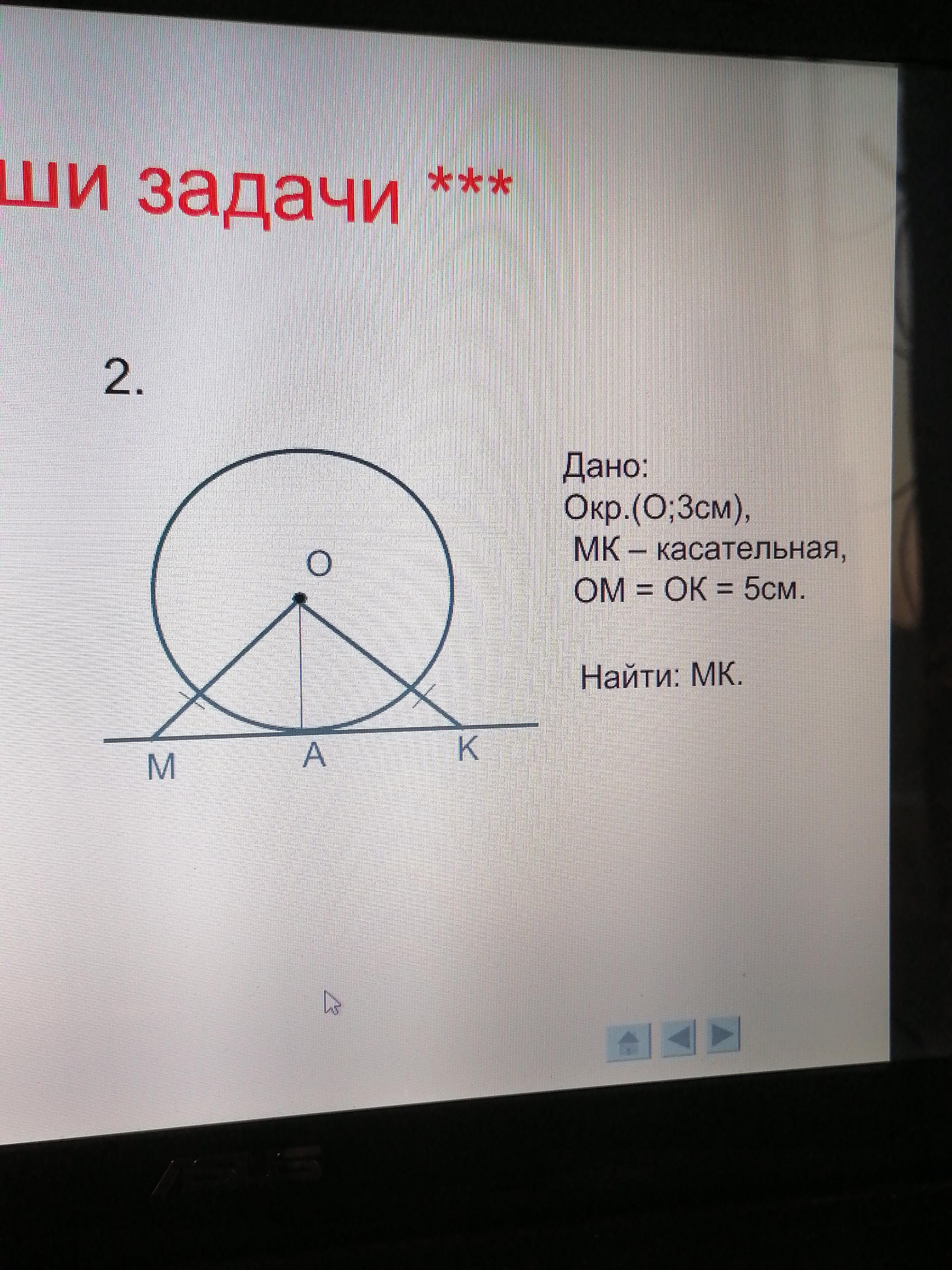 по т пиф сумма квадратов катетов равна квадрату гипотенузы и мы из 5х5 - 3х3 =16 потом извлекаем корень получаем 4 ma так как ma=ak то 4+4=8 это mk