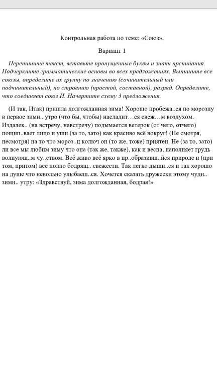 Итак, пришла(сказуемое) долгожданная зима(подлежащее)! Хорошо пробежаться(сказуемое) по морозцу в первое зимнее утро, чтобы насладиться(сказуемое) свежим воздухом. Издалека навстречу подымается(сказуемое) ветерок(подлежащее), отчего пощипывает(сказуемое) лицо и уши, зато как красиво(сказуемое) всё(подлежащее) вокруг! Несмотря на то, что морозец колюч, он тоже приятен. Не за то ли мы любим зиму, что она так же, как и весна, наполняет грудь волнующим чувством. Всё(подлежащее) живо(сказуемое), всё(подлежащее) ярко(сказуемое) в преобразившейся природе и при том, всё(подлежащее) полно(сказуемое) бодрящей свежести. Так легко дышится и так хорошо на душе, что невольно улыбаешься(сказуемое). Хочется сказать(сказуемое) дружески этому чудно зимнему утру: "Здравствуй, зима(подлежащее) долгожданная, бодрая!"
