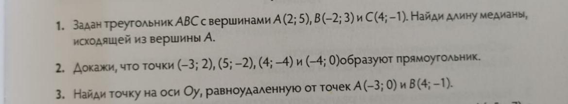 Задан треугольник ABC с вершинами A(2;5),B(-2;3) и C(4;-1). Найди длину медианы, исходящий из вершины A.