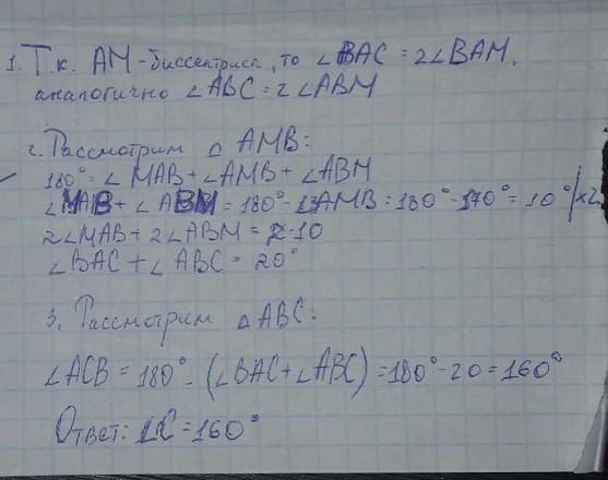 Биссектрисы углов A и B треугольника ABC пересекаются в точке M.