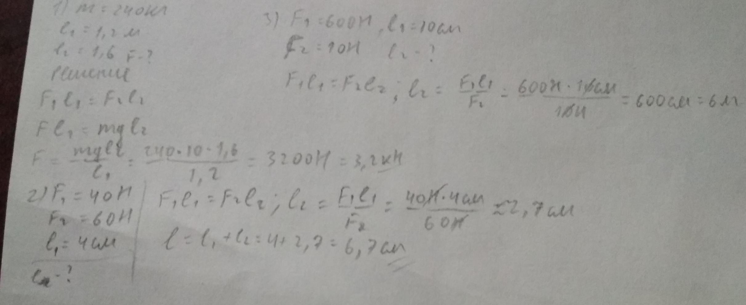 3)на меньшее плечо рычага действует сила 600Н, на большее- 10Н. Длина меньшего плеча10см. Определите длину большего плеча.