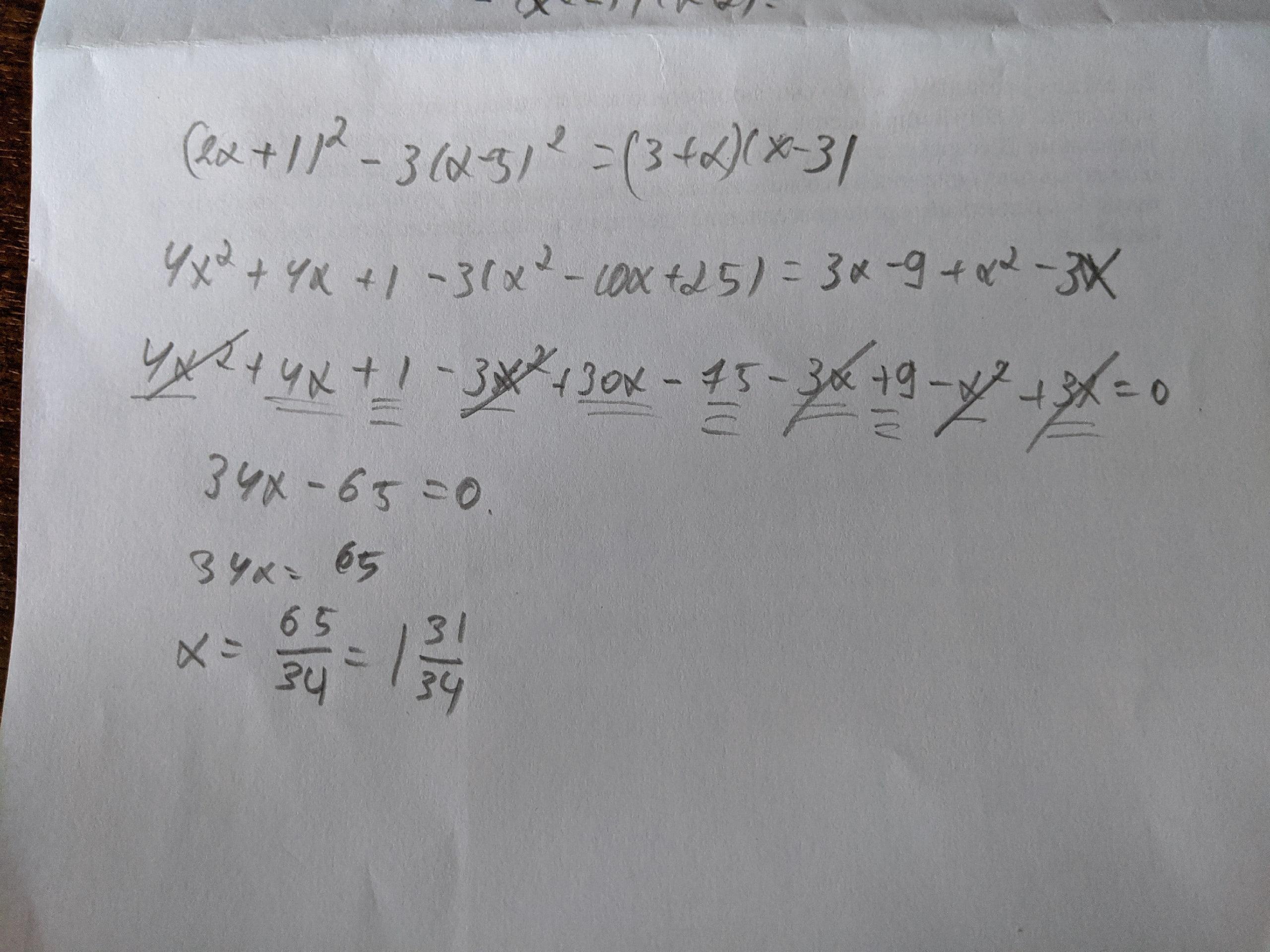 (2х+1)²-3(х-5)²=(3+х)(х-3)