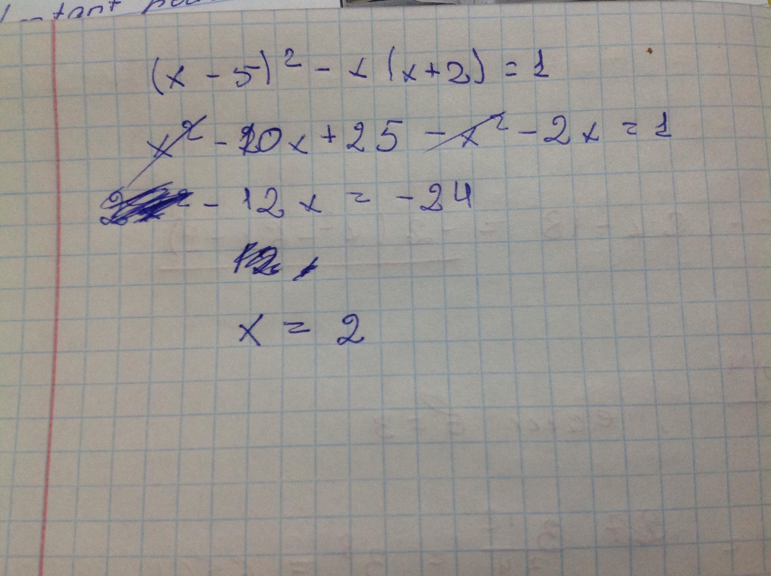 (x-5)^2-x(х+2)=1