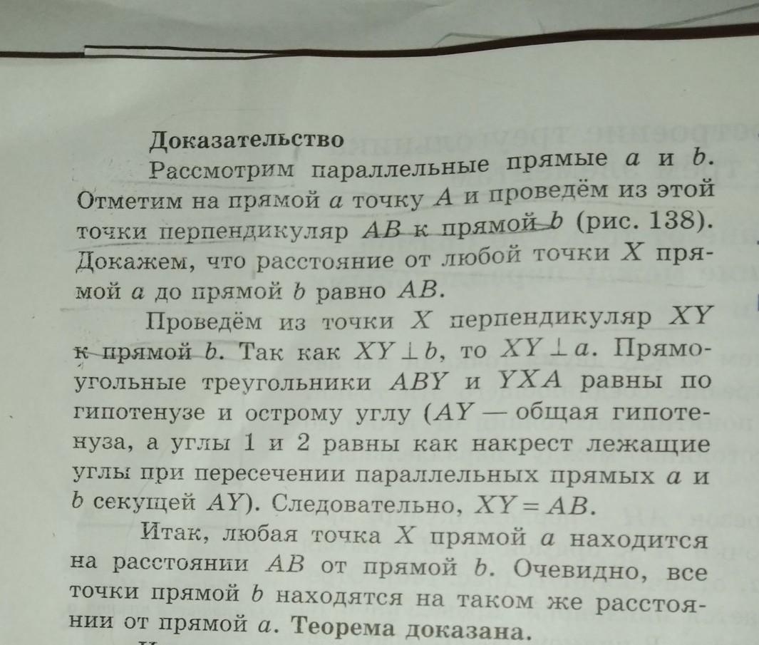 На прямой а отметим точку А, проведём от это точки перпендикуляр AB к прямой b. Доакажим , что AB = премой a и b. Дальше так же, просто сокращай левые слова