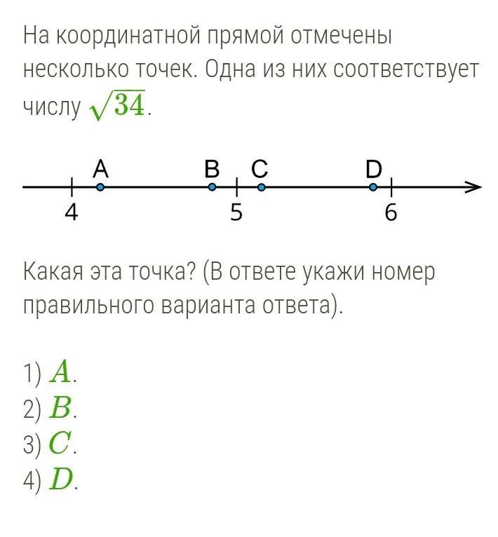 Ответ 4, так как корень из 36 это 6, значит корень из 34 будет ближе к 6