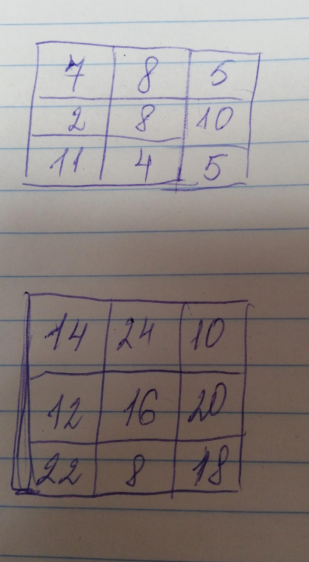 Если в трочки с этими цифрами мы вставим цифру 2, то 8+2+10=20 и 7+11+2=20,