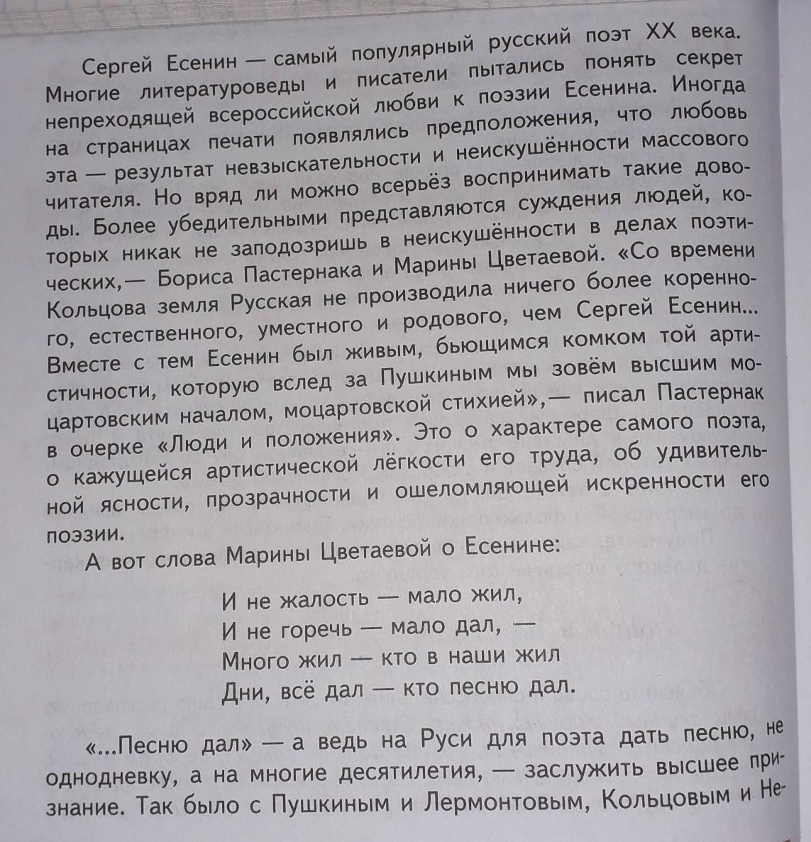 Выпишите главную мысль из текста про Есенина