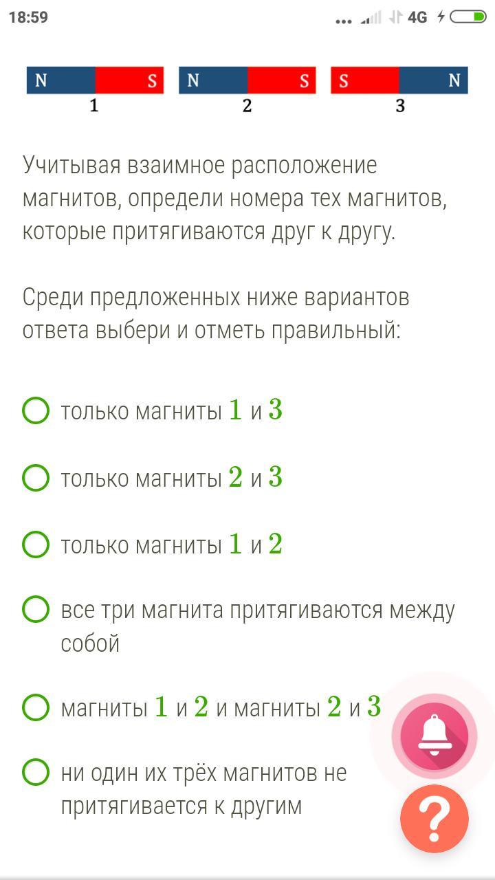 Притягиваются разноименные полюса.Значит только магнит 1 и 2