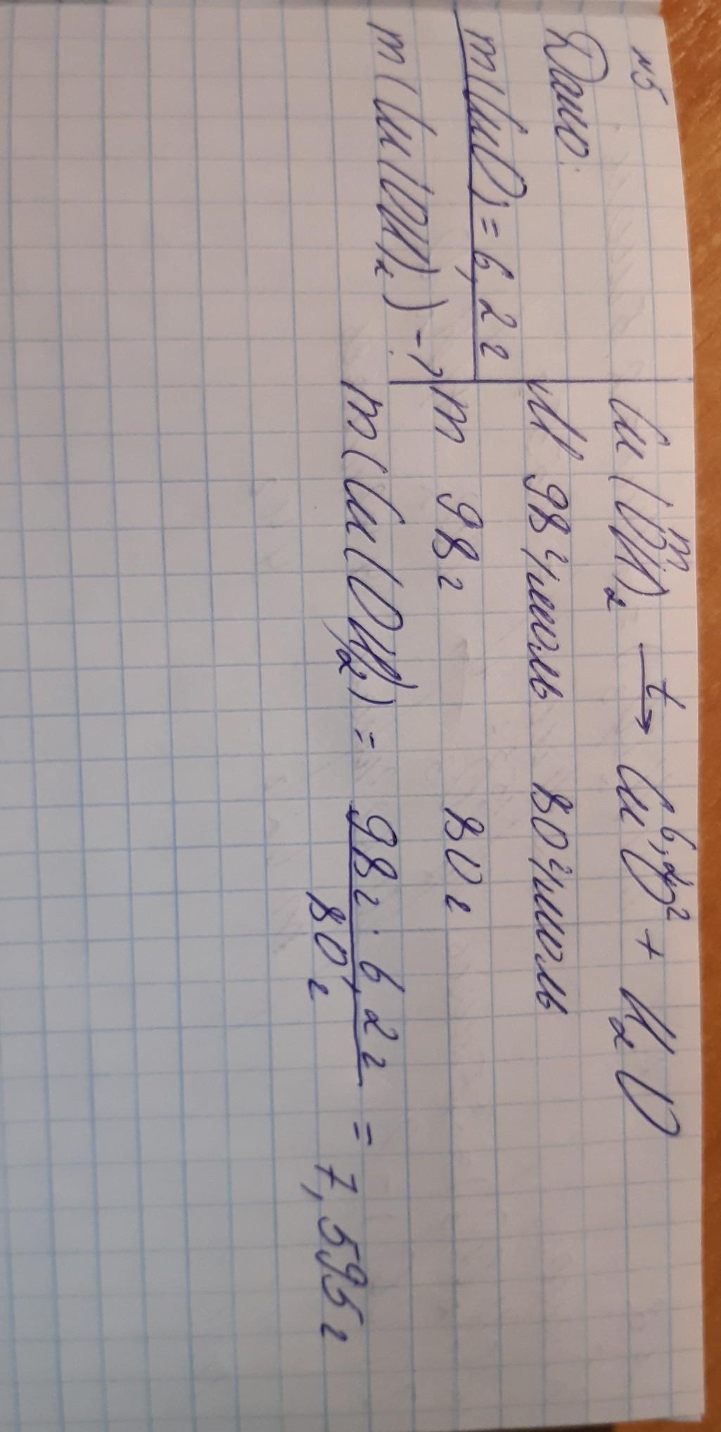 5. Вследствие нагивання меди (II) гидроксид разложился на меди (II) оксид массой 6,2 г и