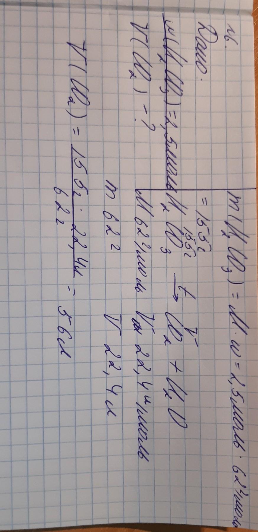 6. Какой объем углекислого газа образуется при разложении 2,5 моль угольной кислоты?