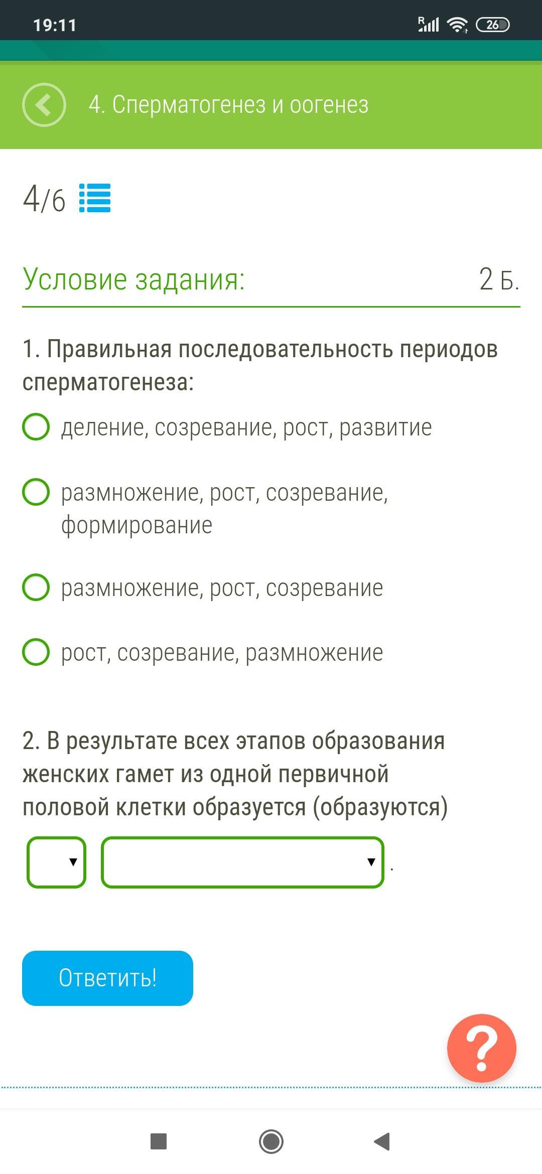 Размножение , рост , созревание , формирование