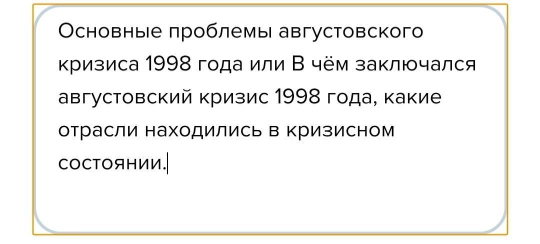 экономический кризис 1998 г Росси был одним из самых тяжёлых экономических кризисов в России .Кризис произошёл на фоне тяжёлой экономической ситуации в стране ,усугублявшейся макроэкономической политикой ,проводившейся властями середине 1990годов .В те годы жёсткая денежная политика ( сдерживание инфляцию за Счёт отказа от эмиссионного финансирования госбюджета и за счет удержания завышенного курса рубля