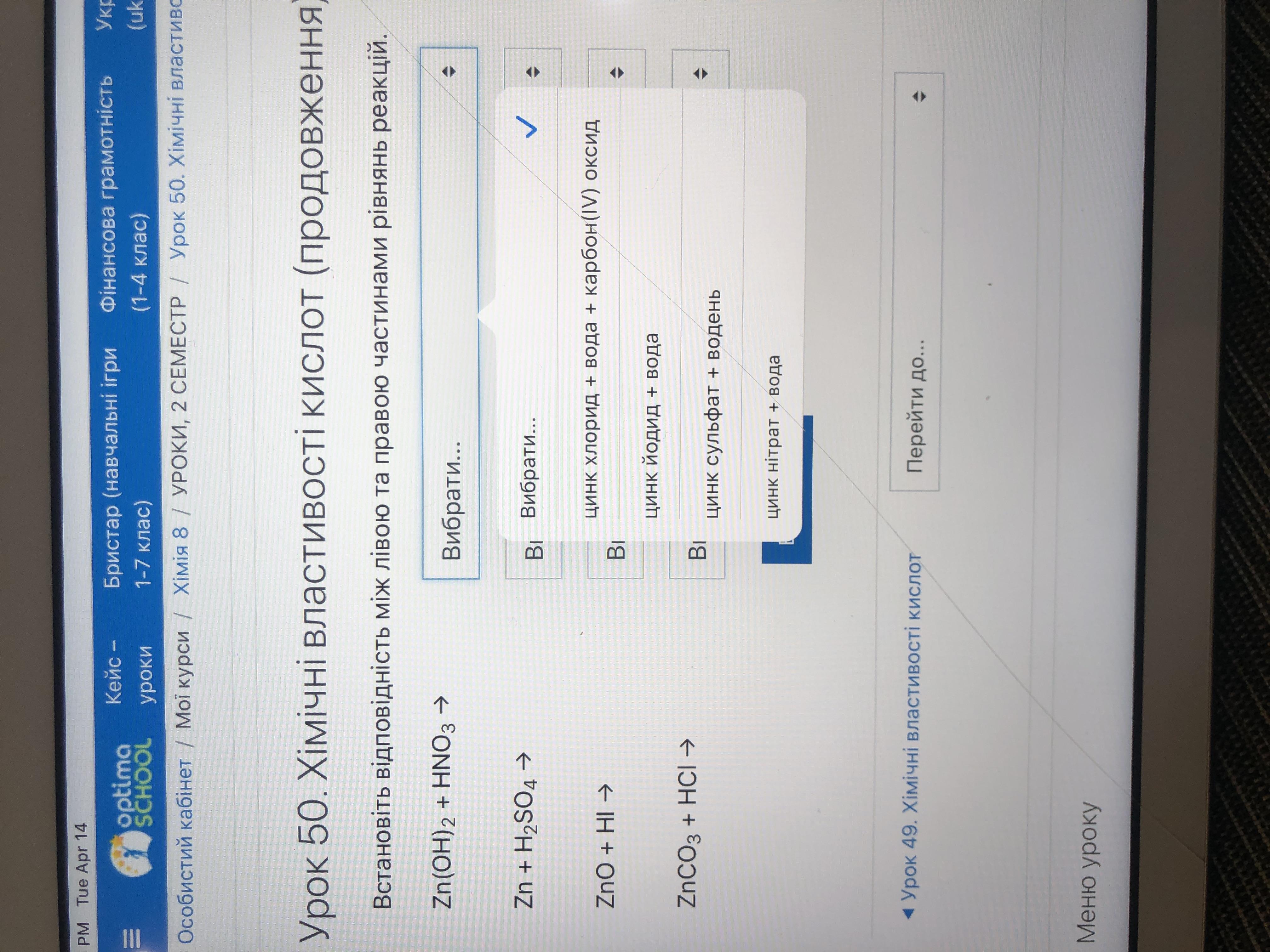 4) хлорид цинка (2) + оксид углерода (4) + вода.