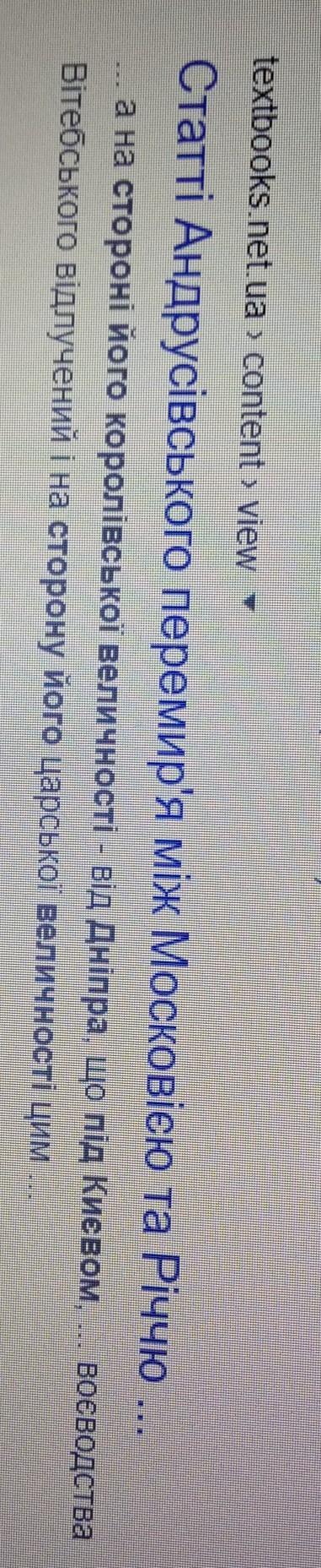 Уривок із якого договору подано нижче? «На стороні його королівської величності — від Дніпра, що під Києвом, і... до Путивльського рубежу ніякого міста, ні волості... від нинішнього часу належати не буде... А внизу по Дніпру земля, що називається Запороги, і тамтешні козаки... мають бути під високою рукою обох великих государів... Місто Київ на сторону Речі Посполитої має бути віддане... через два роки, від нинішнього договору рахуючи...»