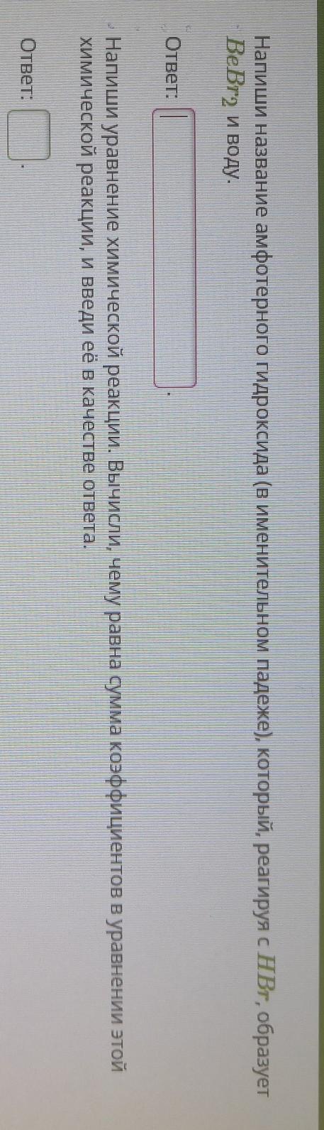 Напиши название амфотерного гидроксида (в именительном падеже), который, реагируя с HBr, образует