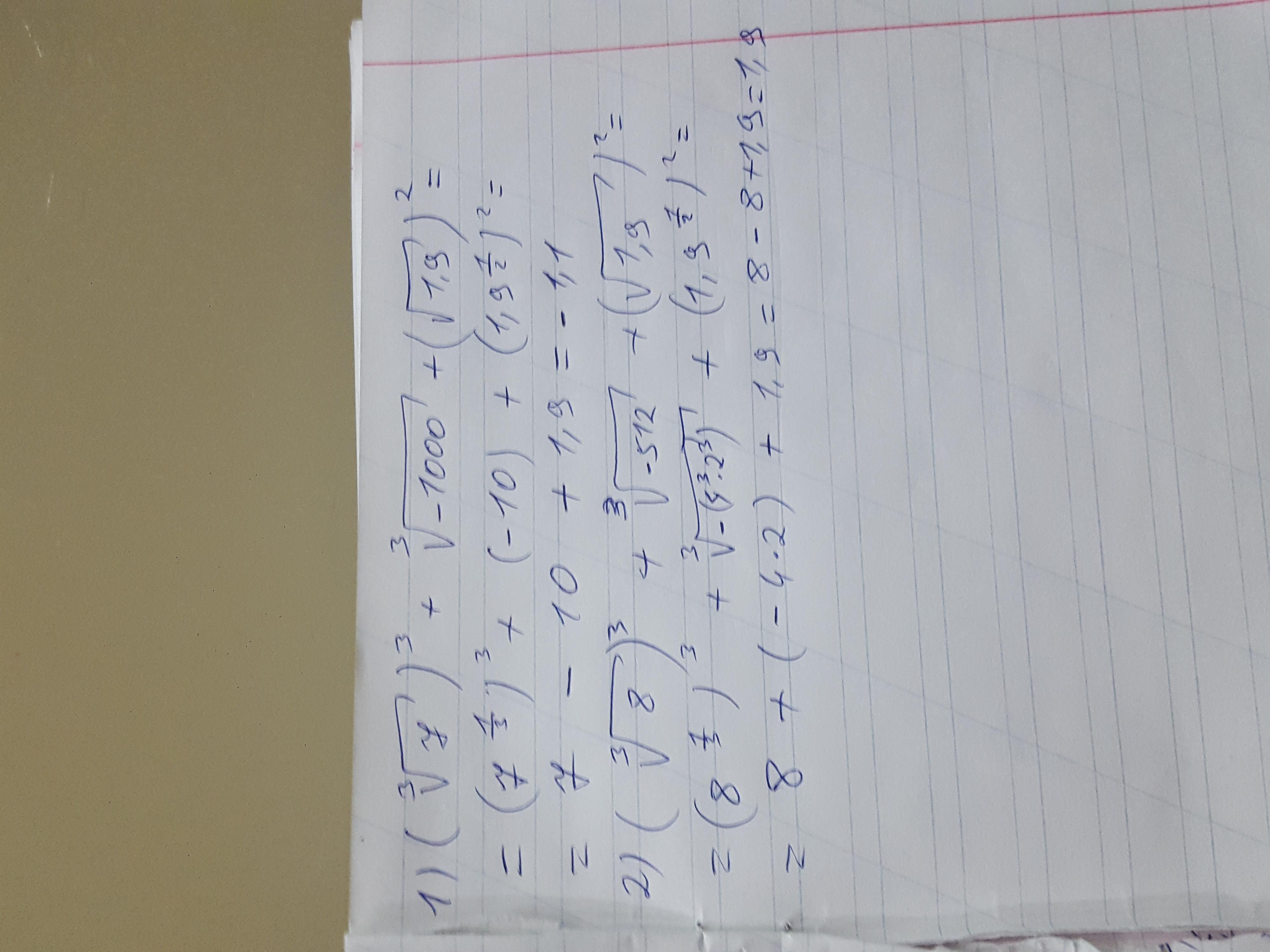 2) (∛8)³ + ∛(-512) +(√1,9)² = (8)³ +(-512)