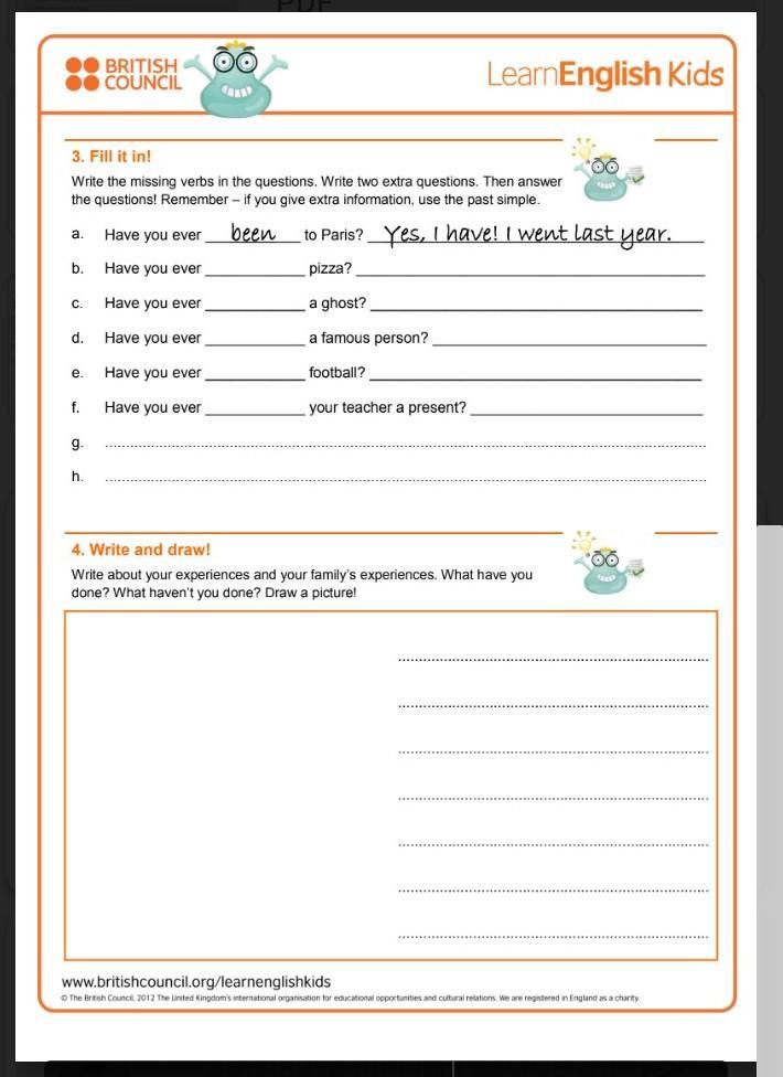 3. Fill it in! Write the missing verbs in the questions. Write two extra questions. Then answer the questions! Remember - if you give extra information, use the past simple.