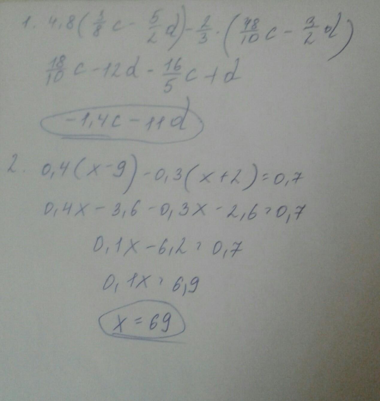 3 Решите уравнение: 0,4(х-9)-0,3(х+2)=0,7.