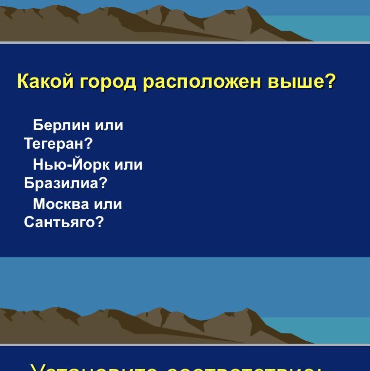Ответ: Тегеран , Нью-Йорк, Сантьяго