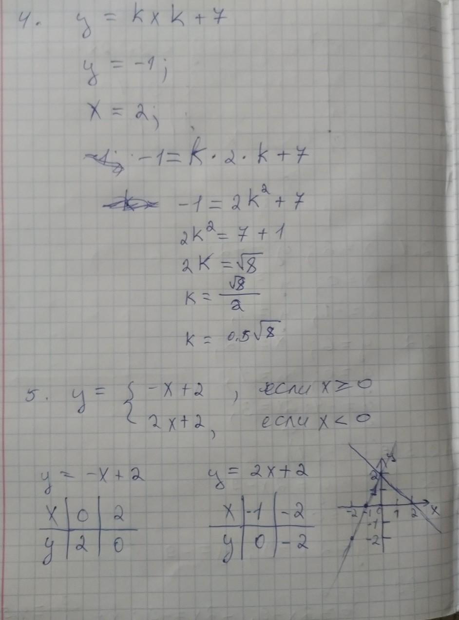 4. Найдите значение k, при котором график функции у= kх k +7 проходит через точку М (2; -1).