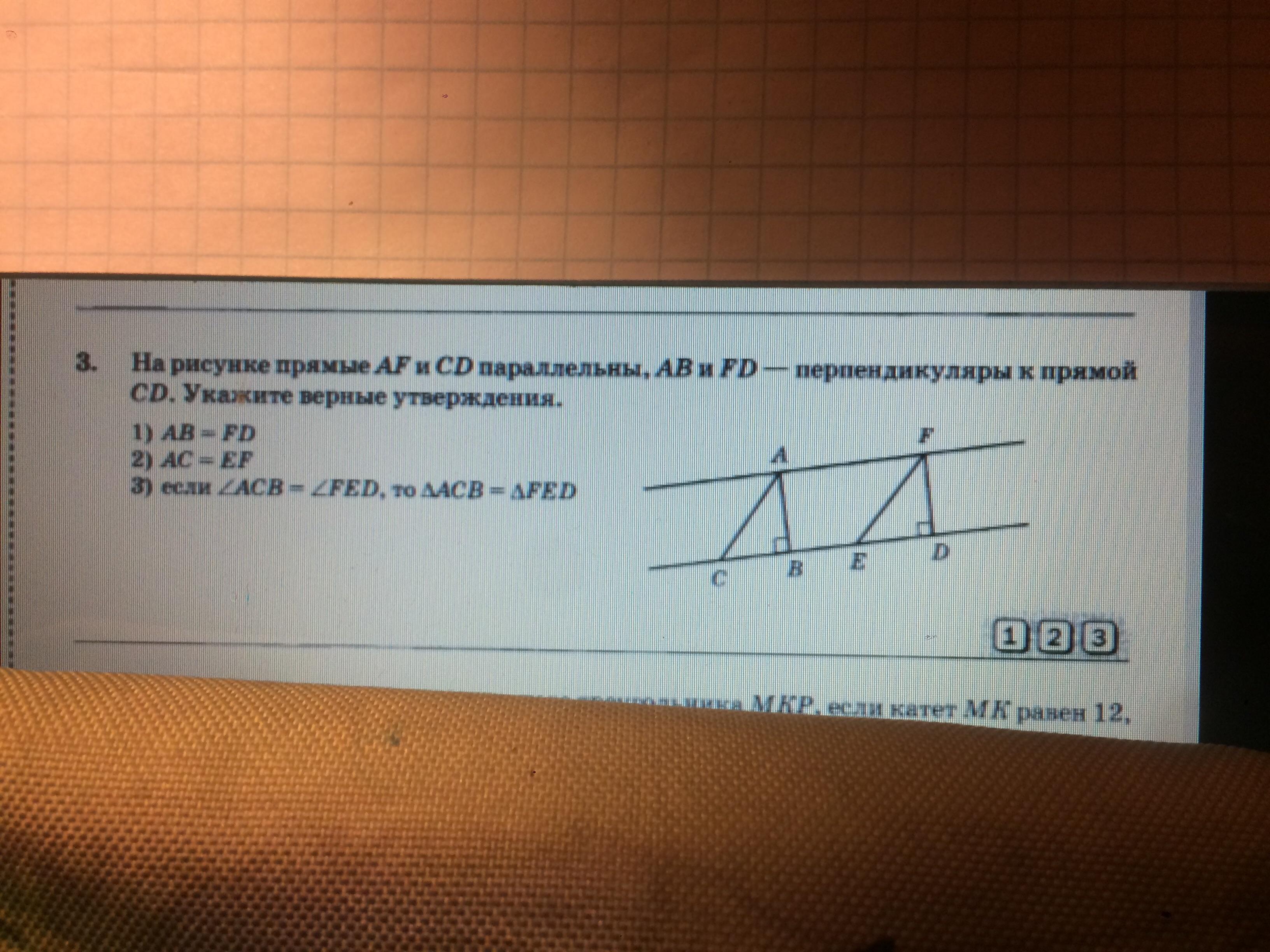 На рисунке прямые AF и CD параллельны, AB и FD-перпендикулярны к прямой CD. Укажите верные утверждения