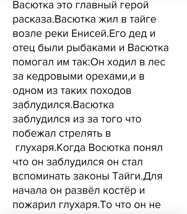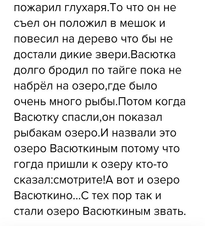 РАССКАЗ "ВАСЮТКИНО ОЗЕРО" СРОЧНО ДАЮ 85 БАЛЛОВ НО НЕ КОПИРОВАТЬ И ПОЛНОСТЬЮ