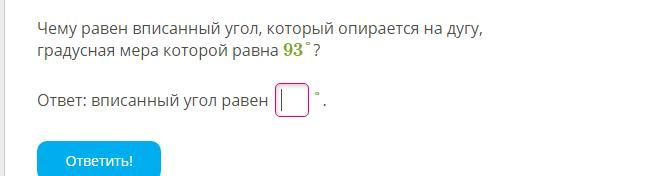Чему равен вписанный угол, который опирается на дугу,