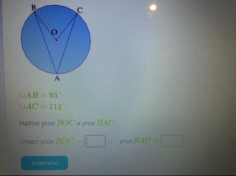 ВАС вписанный угол,равен половине дуги на которую опирается