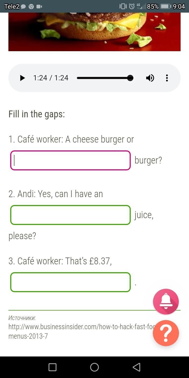 1. Официант: Сырный бургер или....... бургер?