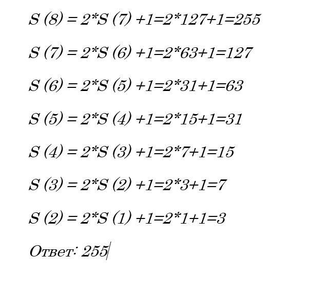 S(n) = 2· S(n - 1) + 1 при натуральном n > 1.
