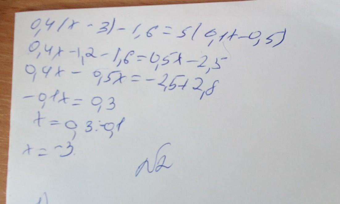 3 заданиеНайти корень уравнений: 0,4*(x-3)-1,6=5*(0,1*x-0,5)
