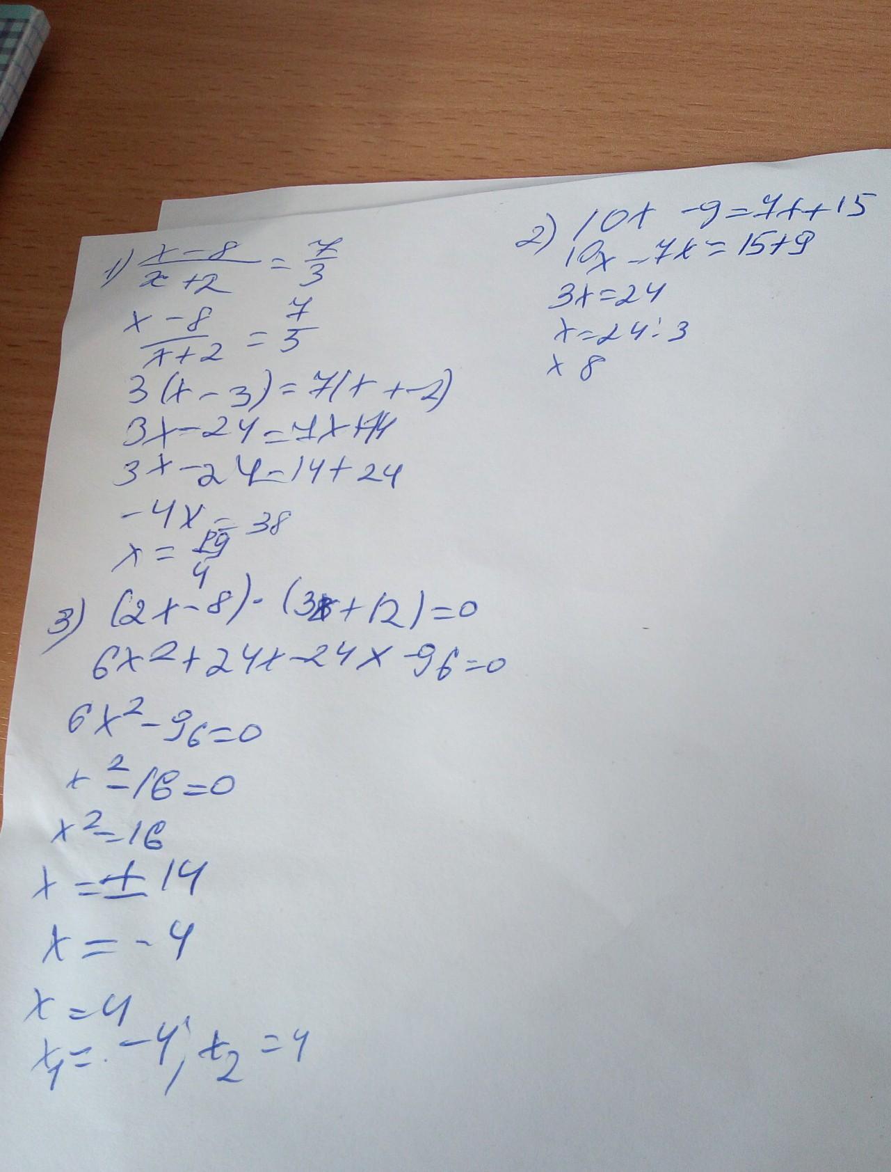 1)задание: 1)10х-9=7х+15 ;2)(2Х-8) *(3Х+12)=0
