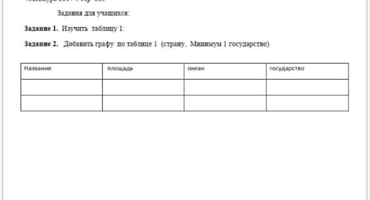 добавить графу в таблице 1(страну . минимум 1 государство)​