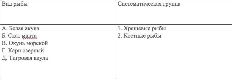 9. Установите соответствие между видом рыбы и ее принадлежностью к систематической группе.