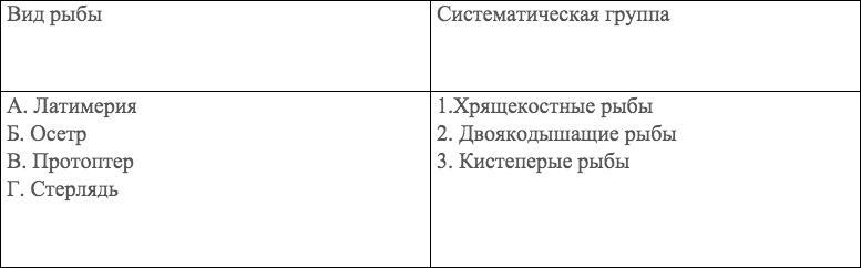 11. Установите соответствие между видом рыбы и ее принадлежностью к систематической группе.