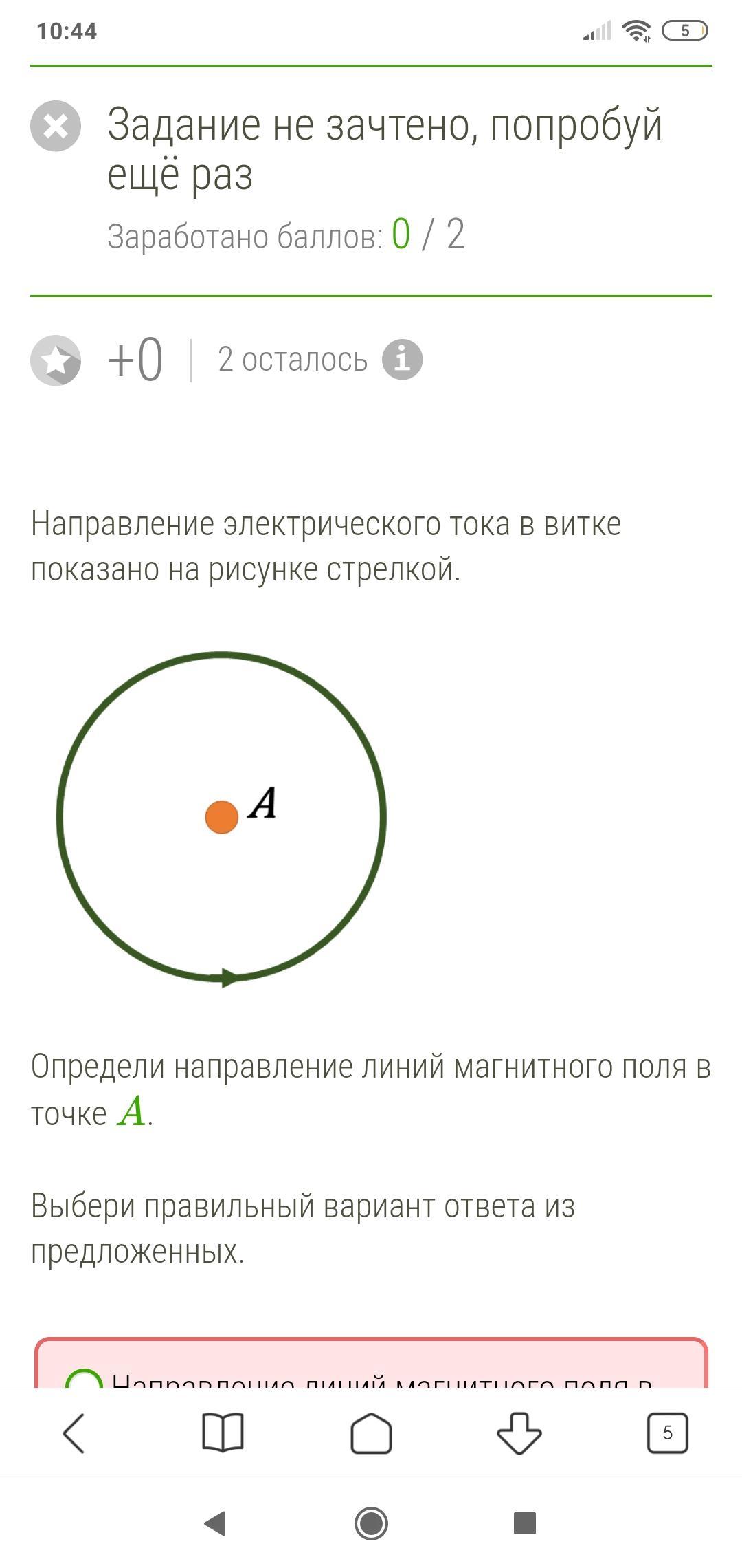 Определи направление линий магнитного поля в точке A .