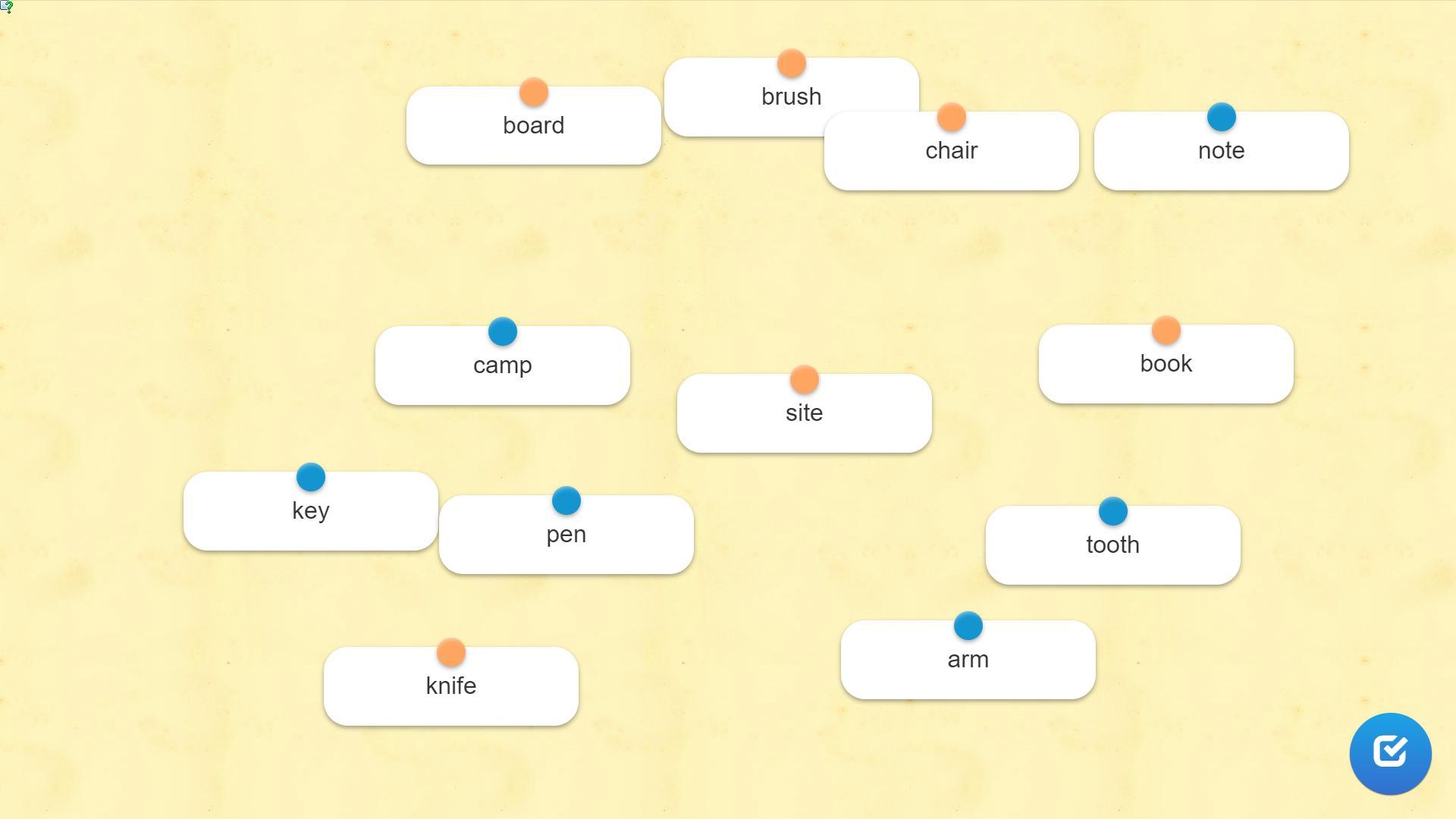 Keyboard, toothbrush, armchair, notebook, campsite, penknife.