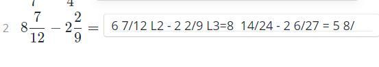 8 целых 21 тридцать шестая минус 2 целые 8 тридцать шестых = 6 целых 13 тридцать шестых
