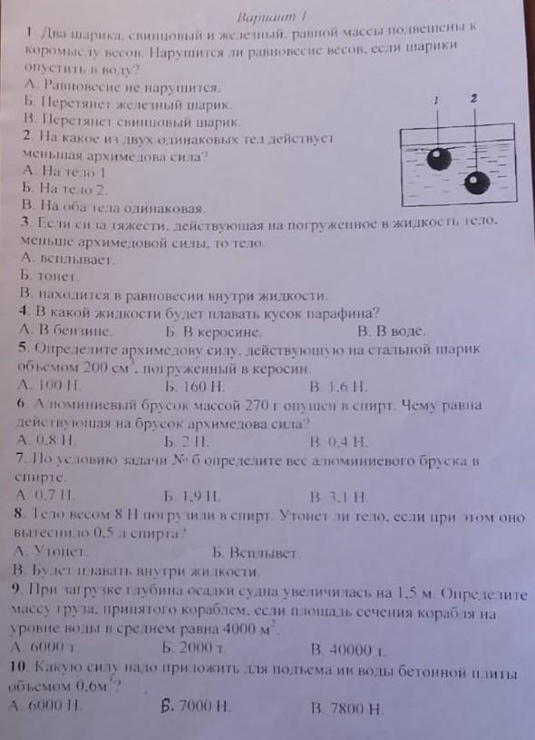 тест 1 вариант Архимедова сила.Плавание тел.Подробное решение(не с г.д.з).ПОЖАЛУЙСТА СРОЧНООО