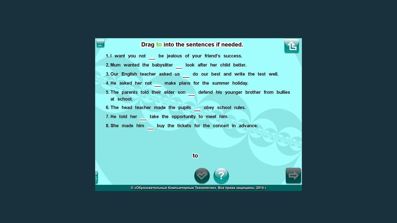 Ответ: вставить частичку To в предложениях под номером 1,3,5,7.