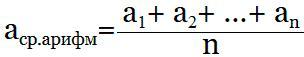 Формула которая используется для расчета среднего арифметического значения: (ниже на фото)
