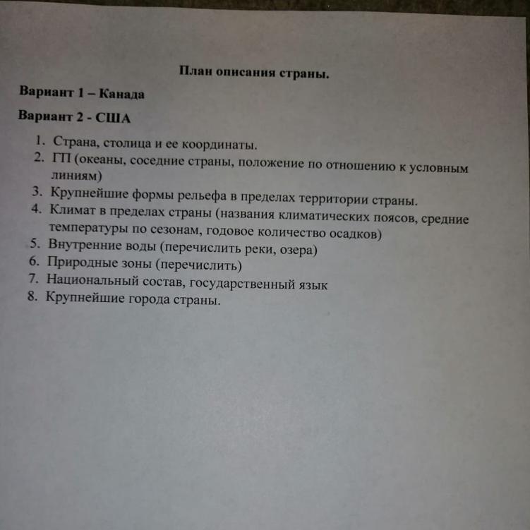помогите пожалуйста с географией. надо 1 вариант (Канада). пожалуйста(