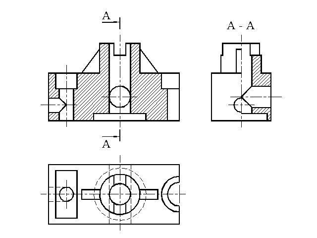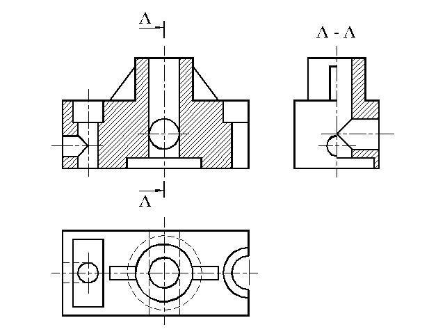 При выполнении 1/2 вида + 1/2 разреза - невидимые линии чертить не нужно (левая часть).