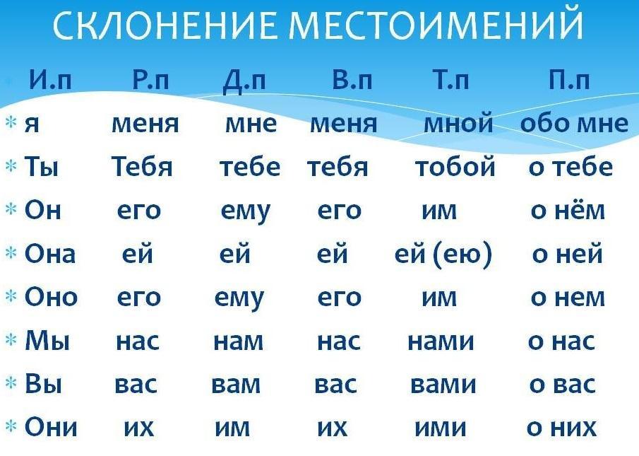 Я конечно не знаю куда тебе эти метоимения нужно поставить, из-за этого я не понимаю какая форма нужна. Вот тебе таблица (Склонение местоимений) поставь сам.